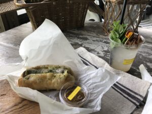 頼んだホットドッグなどをこんなかわいいバスケットに入れてピクニック気分でいただけます。